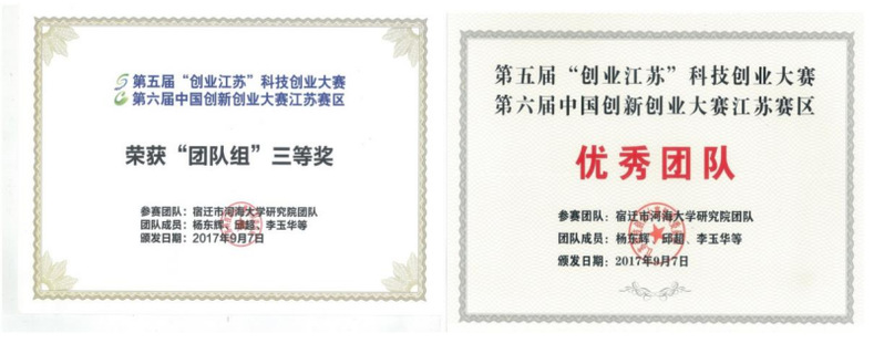 研究院一直致力于转化河海大学优秀的科技成果,积极引进河海大学优秀科研团队,获得省级奖项3项、市级奖项6项。获批江苏省六大高峰人才3人,江苏省科技副总3人,苏北发展特聘专家6人,宿迁市创业领军人才1人,宿迁市千名拔尖人才2名,宿迁市双百工程1人。孵化5家科技型企业,宿迁河海成清环境有限公司、江苏河清海晏环境有限公司(高新技术企业)、宿迁镁纳新材料科技有限公司、江苏问水环境科技有限公司(高新技术企业),江苏博佳桓智能科技有限公司(高新技术企业);河清海晏环境有限公司获得宿迁市科技创业大赛二等奖,荣获国家高新技术企业,获批河海大学研究生工作站,宿迁市工程技术中心。