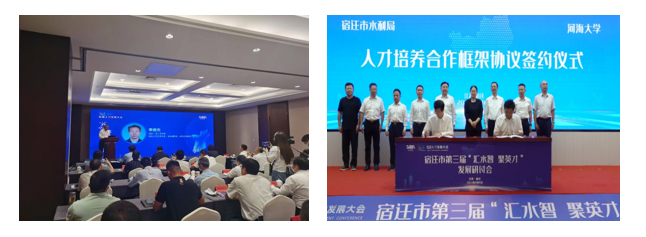 依托河海大学优秀的专家团队,与宿迁经济技术开发区、宿城区、泗阳县、宿迁市化工园区等开展政校企产学研对接活动,调研宿迁企业100余家,组织各类产学研活动30余次。研究院积极参与当地公共事务建设,连续三年与宿迁市水利局联合承办了三届宿迁市人才发展大会“汇水智 聚英才”论坛活动,邀请河海大学专家教授30余人次参与,并联合河海大学承接了宿迁市海绵城市建设项目,推动宿迁入选“国家级系统化全域海绵建设示范城市”,牵头成立“宿迁市水业协会”“河海大学宿迁校友分会”,不断推进行业资源与人才资源的集聚。